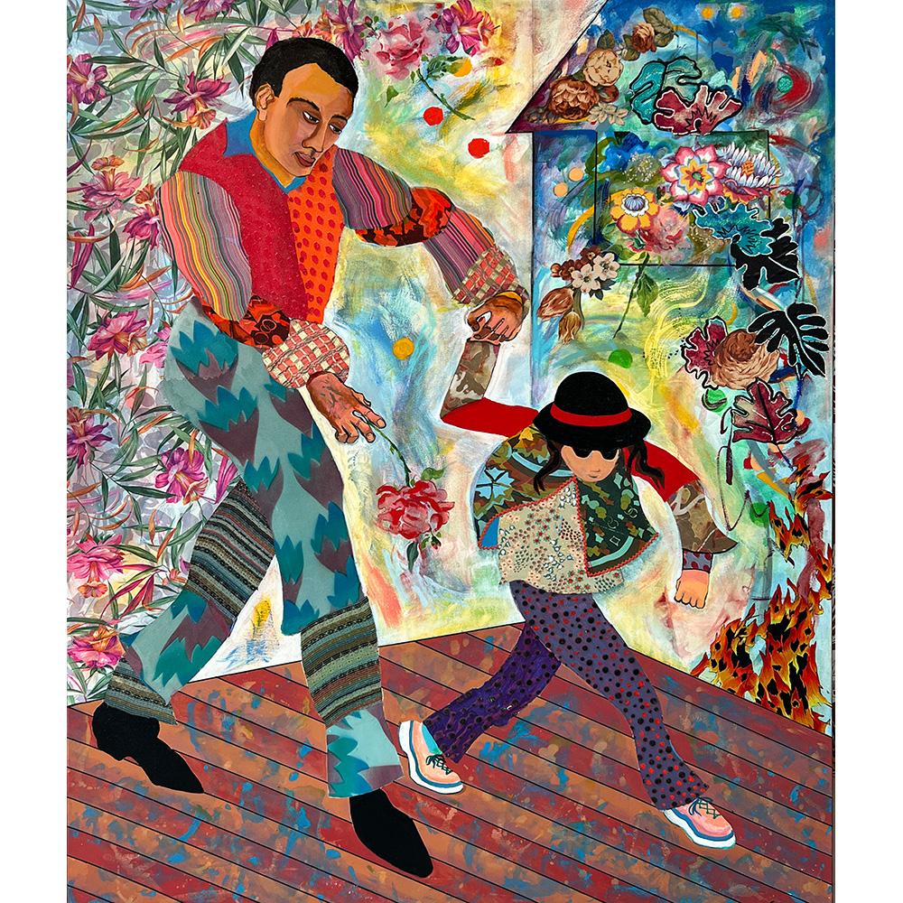 Miriam Schapiro Father and Daughter, 1997 mixed media femmage on canvas 72 x 60" $200000