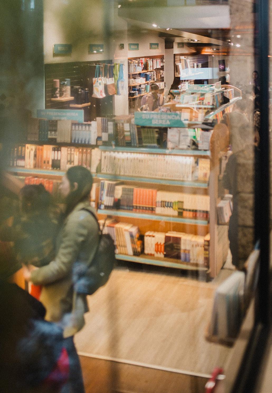Tiene que ver un gran espacio que cuenta con varias estanterías ocupadas con muchas biblias, cientos de libros para todos los gustos, estilos y tamaños, un amplio catálogo de música, una variada oferta de souvenirs, y en donde se sirve mucho café. Se divide en tres espacios: el de las bebidas y la comida, el de los libros y la música, y el de las mesas y una barra. Su decoración se caracteriza por tener mucho color y espacios agradables.