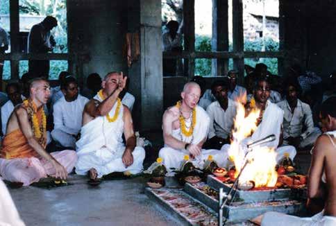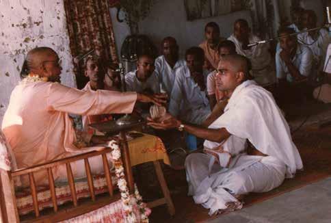 Braja devé däsé: After initiation, especially as we were fasting all day, I felt totally out of this world – sober and fixed. I just felt spiritually surcharged after initiation. Guru Mahäräja gave me the experience that only a mahä-bhägavata can give. It was like nothing I had ever experienced before. My previous initiation was more like a Sunday feast or a party. What I experienced from Guru Mahäräja was very serious and powerful. We took Ekädaçé prasäda after midnight. What an experience I had just had! (Excerpt from Chapter 5)