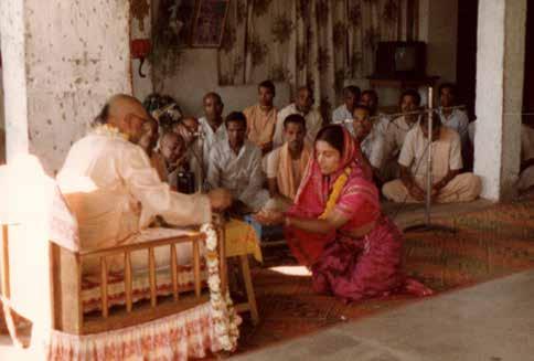 Çréla Gour Govinda Swami: Yes, they know it, but now it is becoming more and more reduced. Bhägavata tuìgés [a special building where the Çrémad-Bhägavatam was read and worshipped] were previously in every village, next to almost every house. Now only rarely you will find them. In my boyhood days, every evening I was reading the Bhägavatam on palm leaves by a burning castoroil lamp. If I did not read it, I was slapped! Yes, my father, mother, guru-janas, would slap me. We were born in such circumstances and trained from very birth. It is still coming to my memory. There was no electricity, even kerosene was not so available. When I was reading as a student, I was burning a castor-oil lamp, and I would walk by foot - there was no vehicle, nothing. Hundreds of miles I was walking, walking, walking. I have walked to Puré. Now it is not necessary, it is all Westernised; no Bhägavata-tuìgé - all clubs, nude clubs. So, India is like wet wood now [the path of bhakti is not flourishing as it should] and the Western countries are like * in 1989, exact date not known.