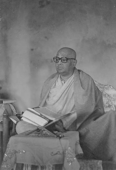 I offer my respectful obeisances unto His Divine Grace Śrīla Gour Govinda Swami, who is very dear to Lord Kṛṣṇa, having taken shelter at His lotus feet.
