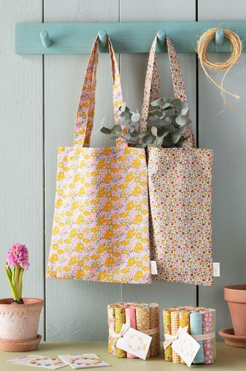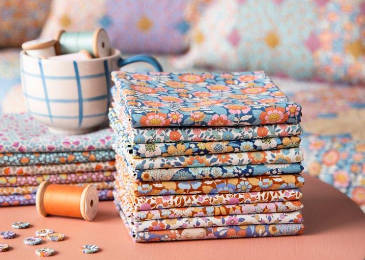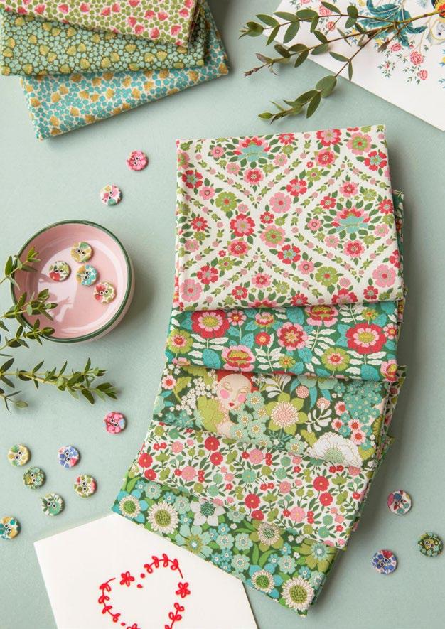 Creating Memories (p 26–31) are Seasonal Basics with a charming mix of small-patterned printed and woven fabrics. The collection is divided into four seasons by color: Spring and Easter Pastels; Summer and Ocean Blues; Autumn, Thanksgiving, Halloween and Winter Reds and Greens.