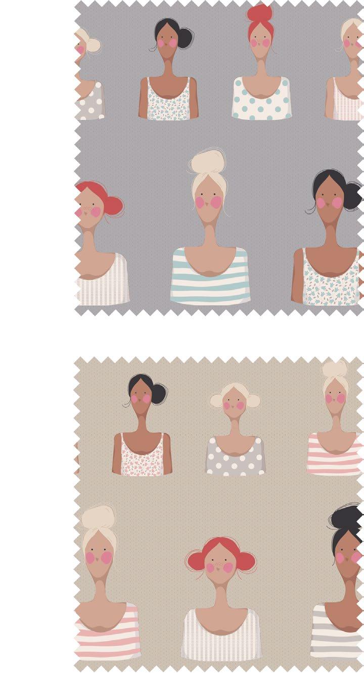 Back by popular demand, the Me and My Friend fabrics are great for personal gifts, place cards, ornaments and fun appliqué projects. Now available in four colors as an addition to our Basic concept. The design consists of female busts in two sizes ranging from 3,3 to 5,7 in (8,5 to 14,5 cm) depending on hairstyle.