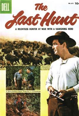 (top right) Robert Taylor broke from his good guy roles to play a cold-blooded hunter out to kill buffalos for profit in The Last Hunt (1956). Four Color #678.