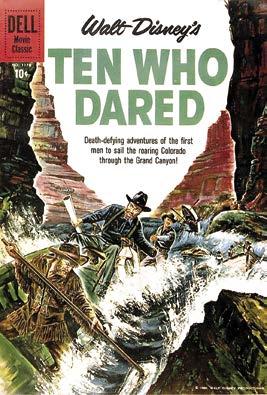 Gaylord Du Bois’ writing for the Dell comic ( FC # 672, 1955/p) told the story well, though it left out the more adult-themed sections of the movie. Ralph Mayo’s art (inked by Mike Peppe) was excellent throughout, especially in the end battle and in drawing Taylor and Kendall.