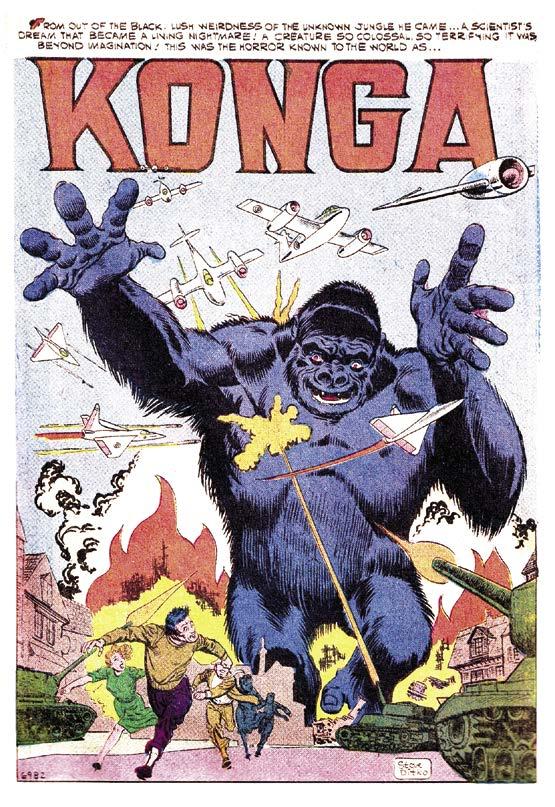 In 1968, Whitman issued a comic book adaptation worthy of such a great film to coincide with the 35 th anniversary rerelease of the film. The Whitman one-shot was tabloidsized, with art by Alberto Giolitti and a magnificent painted cover by George Wilson of Kong fighting the biplanes with one hand while holding Ann with his other. Gold Key published a regular comic-sized version, containing the same story and artwork.
