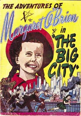 The 20-page comic book adapted from the film was published as The Adventures of Margaret O’Brien In “The Big City” and was a giveaway by Bambury Fashions, a maker of children’s clothes. The tale within was a fairly straightforward version of the film, but with a major religious censorship surprise on page one. Of the three men, only the policeman’s occupation stayed the same. The Protestant minister of the film was changed to a director of an east side settlement house and the cantor was now a storekeeper. The artwork for the issue was not signed but it resembles the work of a number of artists of the period, including Sheldon Mayer.