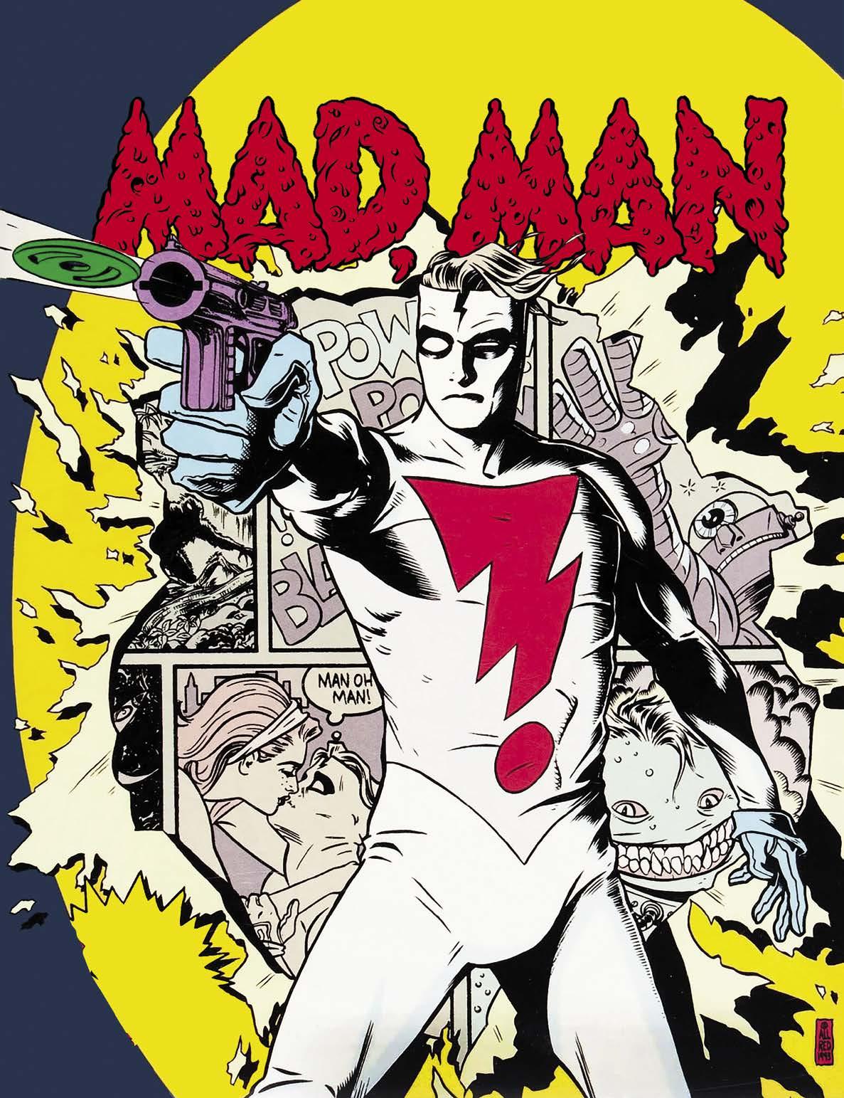 But it was also an exciting time: For every Image comic, it seemed Dark Horse had a higher quality answer with creators like Frank Miller (Sin City ), Mike Mignola ( Hellboy ), Paul Chadwick ( Concrete ), and Geof Darrow ( The Big Guy and Rusty the Boy Robot); Peter Bagge was bringing Hate! to Fantagraphics readers while Dan Clowes continued to experiment with narrative and form in Eightball; DC Comics experimented with adult genres, particularly horror, with books like Neil Gaiman’s Sandman and Grant Morrison’s Doom Patrol ; and then, from a series of small publishers, emerged Mike Allred’s Madman , a send-off and