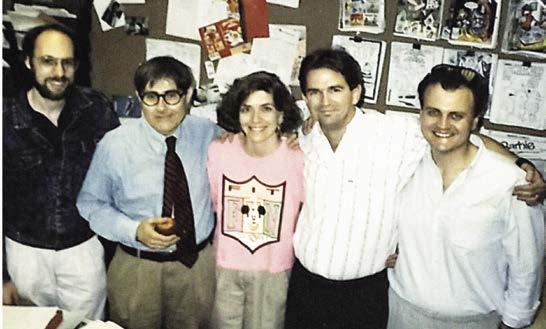 (left columns) AmToy’s Madballs: (clockwise from top left) Screamin’ Meemie, Oculus Orbis, Slobulus, Dust Brain, Skull Face, and the problematically-named Crack Head. (top right) The Star Comics crew in the late 1980s, (left to right) Angelo DeCesare, Sid Jacobson, Lisa Trusiani, Michael Gallagher, and Dave Manak. (bottom right) The Madballs introduce themselves in issue #1.
