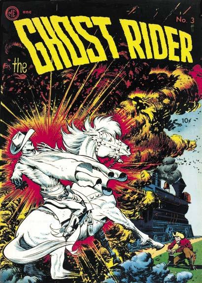 Created by writer Ray Krank and artist Dick Ayers as a backup story in issue #11 of ME’s western title Tim Holt, Rex Hart was a Federal Marshall with a secret identity, the gunfighter they called the Calico Kid. This lasted for only a few issues (and strangely a number of TV episodes on western programs like Loredo), before Rex adopted a new identity, The Ghost Rider. The Kid’s horse Ebony was also replaced by the much spookier Specter, and at some point Rex Hart was changed to Rex Fury. The redesign proved popular and sales soared. The Ghost Rider could soon be found shooting it out across