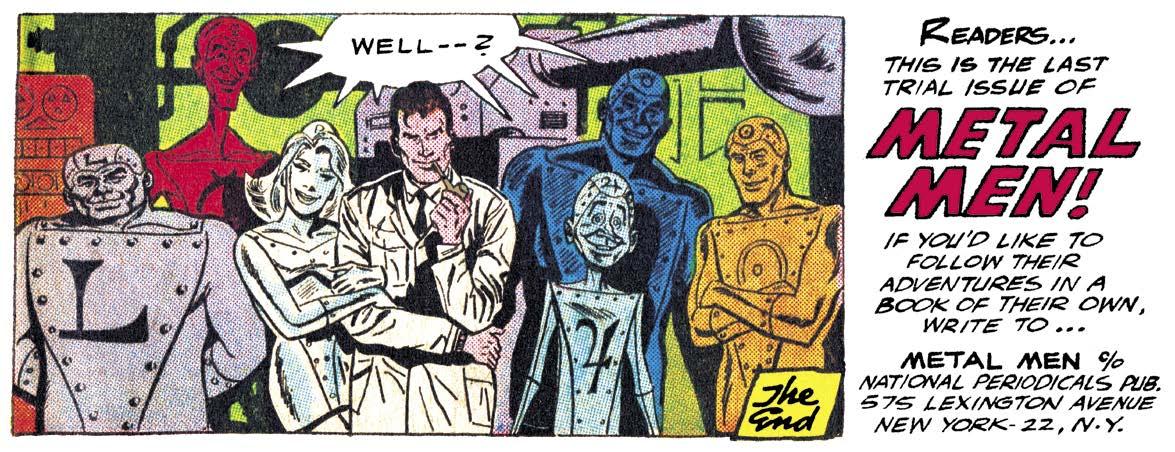 Kanigher’s response to Donenfeld: “I said, ‘Metal Men.’ I said, ‘Metal robots with human characteristics that retain their metal characteristics simultaneously.’ And he said, ‘Do it.’ That’s all.