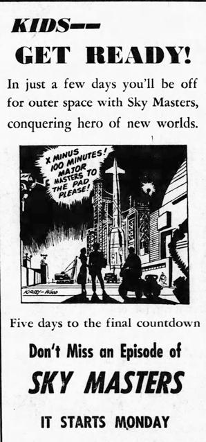 (The background image on this page is actual size!) Standard newspaper broadsheets were typically 15" x 22¾" in those days, but the last full page strip (the final one reprinted here) appeared on Sept. 22, 1957. After that, it went to a half-size horizontal format, and by December 8, 1957, it had eschewed typeset lettering for comic book-style handlettering.
