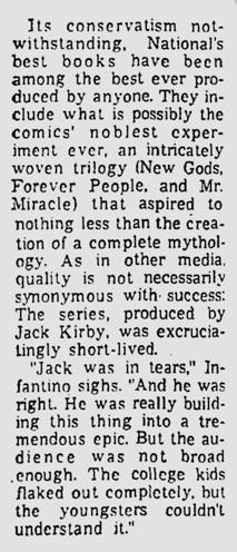 JACK KIRBY: Mike Royer [left, photographed at this 1973 con] works on my strips before I send them back to New York. As far as color goes, DC’s equipped to do that job, and has very competent people to do that job, and I rely on them in that respect, and I’m quite satisfied in what they do.