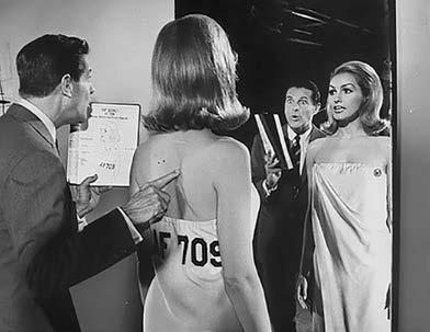 There was no official pilot, but the initial episode, “Boy Meets Girl”, set the stage for what was to follow. Rhoda, officially “sub-Project AF-709” developed by Dr. Carl Miller (Henry Beckman), wanders out of the Space Research Center. Bob MacDonald, the Center’s psychiatrist, finds her. A panicked Dr. Miller realizes he can’t bring his topsecret project back into the building past the security guards. Bob is obliged to take her home. Miller is then suddenly