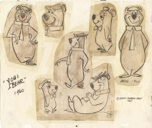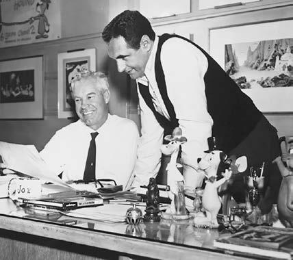 In 1957, Barbera re-teamed with his former partner Hanna to produce cartoon films for television and theatrical release. The two brought their different skills to the company as they had at MGM. Barbera was a skilled gag writer and sketch artist, while Hanna had a gift for timing, story construction, and recruiting top artists. Major business decisions would be made together, though each year, the title of president alternated between them. A coin toss determined that Hanna would have precedence in the naming of the new company, first called H-B Enterprises but soon changed to Hanna-Barbera Productions. (Speaking of coins, Bill and Joe invested $30,000 out-of-pocket to spark the venture.) Barbera and Hanna’s MGM colleague George Sidney, the director Model drawing of Crusader Rabbit and Rags circa 1950s. Artist uncredited. © 20th Century Fox. Courtesy of Heritage.