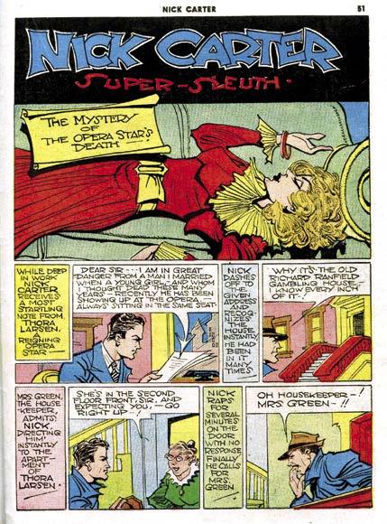 ( LEFT) Nick Carter, Master Detective (MGM, 1939) one sheet . (BELOW) Nick Carter comic book splash page from Shadow Comics #3 (Street & Smith, May 1940).