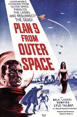 The poster for Wood’s Plan 9 From Outer Space shows a caped figure representing Lugosi. © Reynolds Pictures.