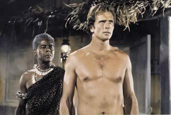 From the Tarzan episode “The Pride of the Lioness”. Tarzan has a conflict with a mother who does not want her doctor son to follow in his dad’s footsteps and live in rural equatorial Africa. Tribal chief Kanzuma (Davis Roberts) looks on. Banner Productions/NBC. Tarzan TM and © Edgar Rice Burroughs (ERB).