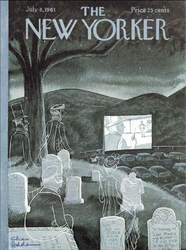 (ABOVE) Addams cover to The New Yorker (July 8, 1961). © Condé Nast. All rights reserved. (BELOW) Addams introduces a protoype Morticia in this New Yorker cartoon. Art © Tee and Charles Addams Foundation.