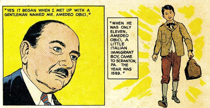 (LEFT) Amedeo Obici as a child and an adult as seen in (ABOVE) The Personal Story of Mr. Peanut comic book (1956). © Hormel Foods, LLC. Both courtesy of the Hagley Museum and Library.