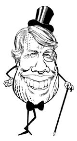 (ABOVE) Screen capture of a young Addamsdrawn skeleton found on a neighbor’s barn from an ABC LOCALish broadcast. © ABC Entertainment. (BELOW) Addams’ mother sought out cartoonist H. T. Webster for his opinion of her son’s work. Webster portrait by Boris Chaliapin. © TIME USA, LLC. All rights reserved.