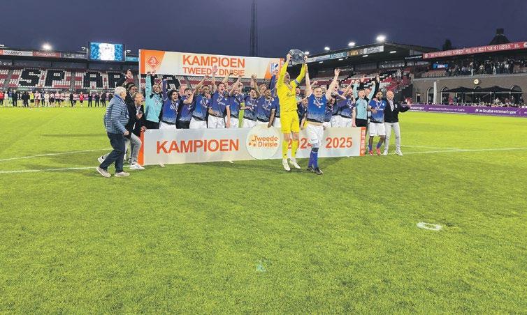 nenschoot. De spanning keerde even terug na de 1-2 van Jong Sparta vlak voor tijd, maar Brouwer benutte direct daarna een strafschop. In blessuretijd zorgde Junte met de 1-4 voor de definitieve beslissing. Toen het laatste fluitsignaal klonk, brak de ontlading los. “Dit is zo ontzettend mooi. Ik moet het allemaal nog laten indalen,” zei routinier Jan Willem Kamp. “Ik ben zo dankbaar dat ik dit nog mee mag maken in mijn laatste seizoen. Fantastisch om