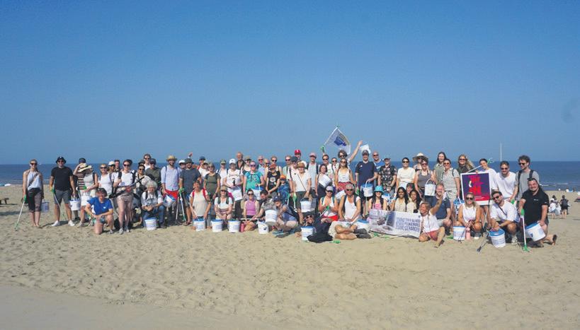 OPSCHOONACTIE n Jaarlijks tussen 1 en 15 augustus vindt de Boskalis Beach Cleanup plaats, het opschonen van het strand tussen Schiermonnikoog in het noorden en Cadzand in het zuiden. Elke dag wordt een stuk strand vanuit beide richtingen opgeruimd om uiteindelijk op 15 augustus in Zandvoort elkaar te treffen. Donderdag 14 augustus was het strand van Noordwijk aan de beurt om van zwerfafval te worden ontdaan. Bij het verzamelpunt bij de Koele Costa werd bij de start om 10.00 uur door de organisatie nog even onder de aandacht gebracht hoe belangrijk het is voor mens en natuur dat het strand vrij blijft van zwerfafval. Eén voorbeeld werd aangestreept: “Vorig jaar hebben we de vrijwilligers gevraagd ballonresten apart te houden van het overige afval. Met die gegevens zijn we naar de politiek gegaan met als resultaat dat het merendeel van de gemeenten in Nederland het oplaten van ballonnen niet meer toestaat”.
