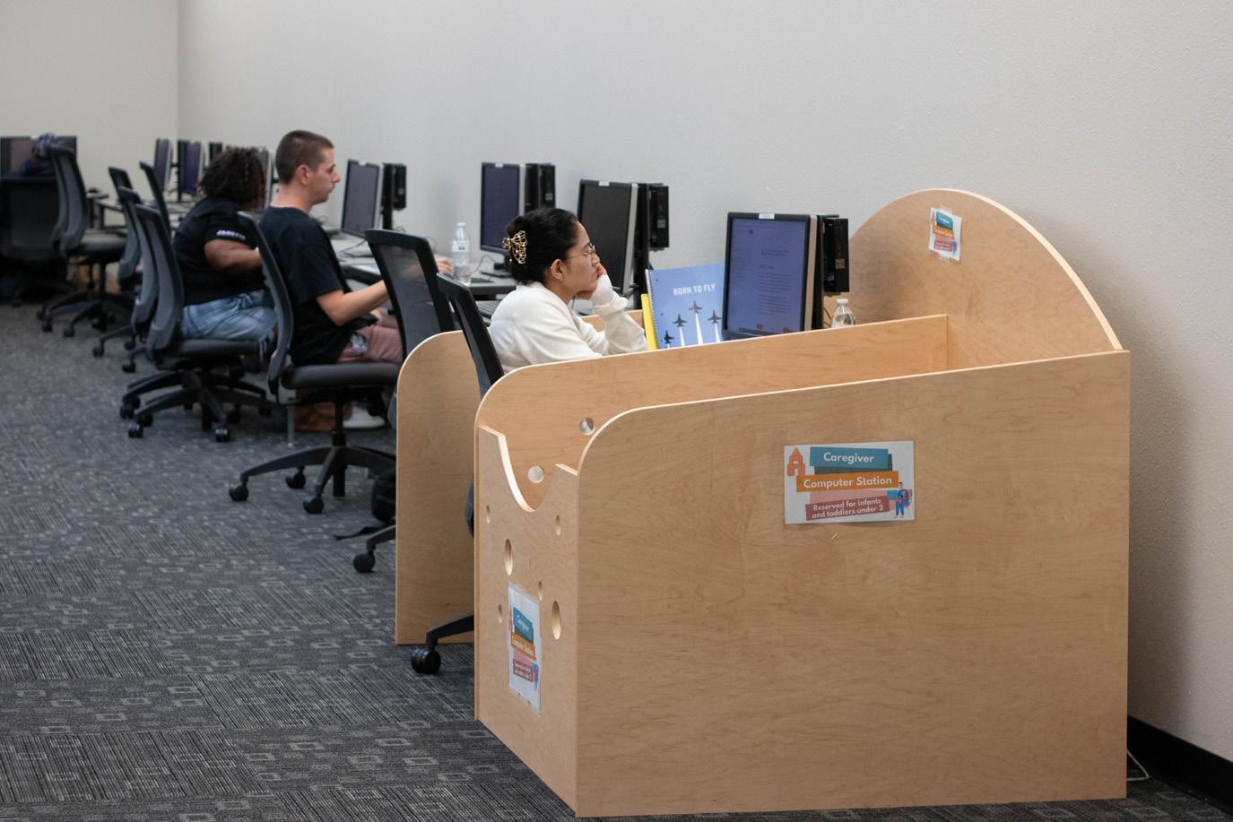 Branch more due to the new layout and accessibility. Caregivers come in solely to use the Caregiver/Child Workstation and have indicated they are sharing this with their mom groups. One of the former computer areas with built in counters was repurposed to create a quiet room laptop bar. This restructured space has received numerous compliments and positive feedback.