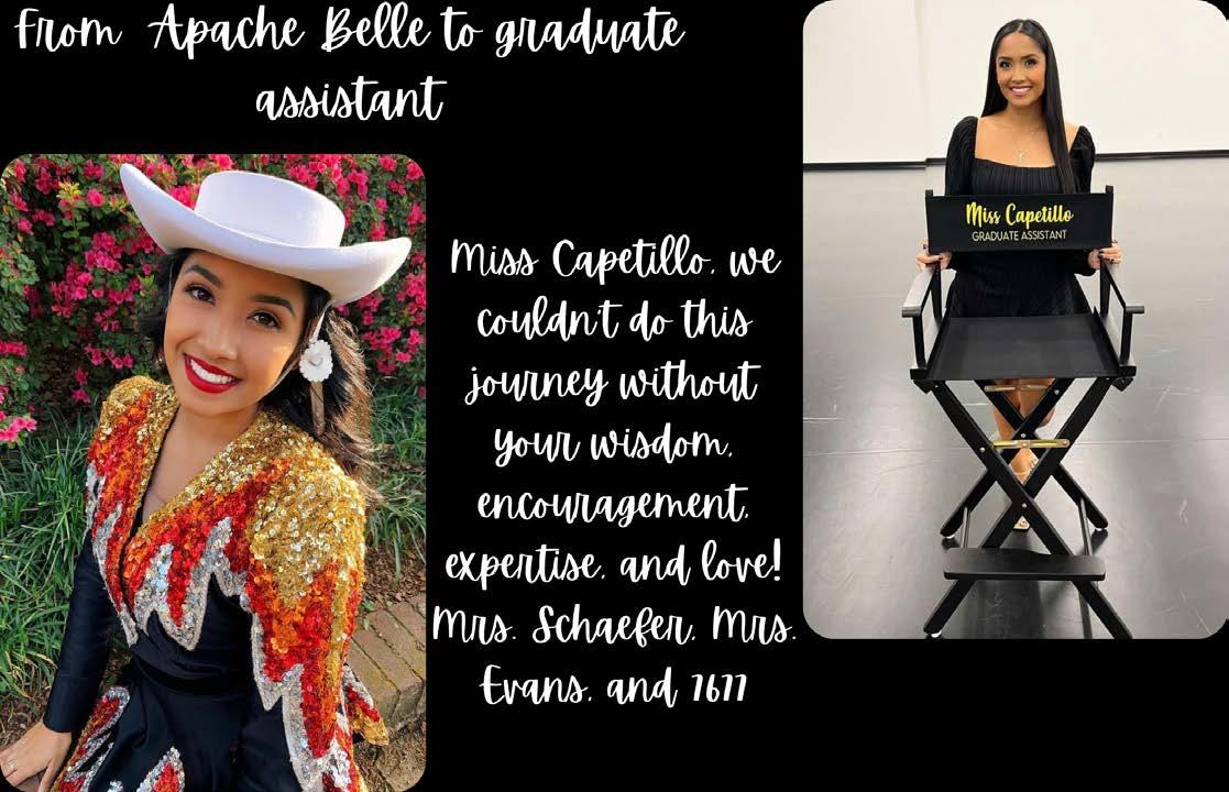 You have taken up the mantle as you were charged to do when you became an Apache Belle and as you complete your journey this weekend and take your final bow, please know how proud we are of the strides that you have made along the way.