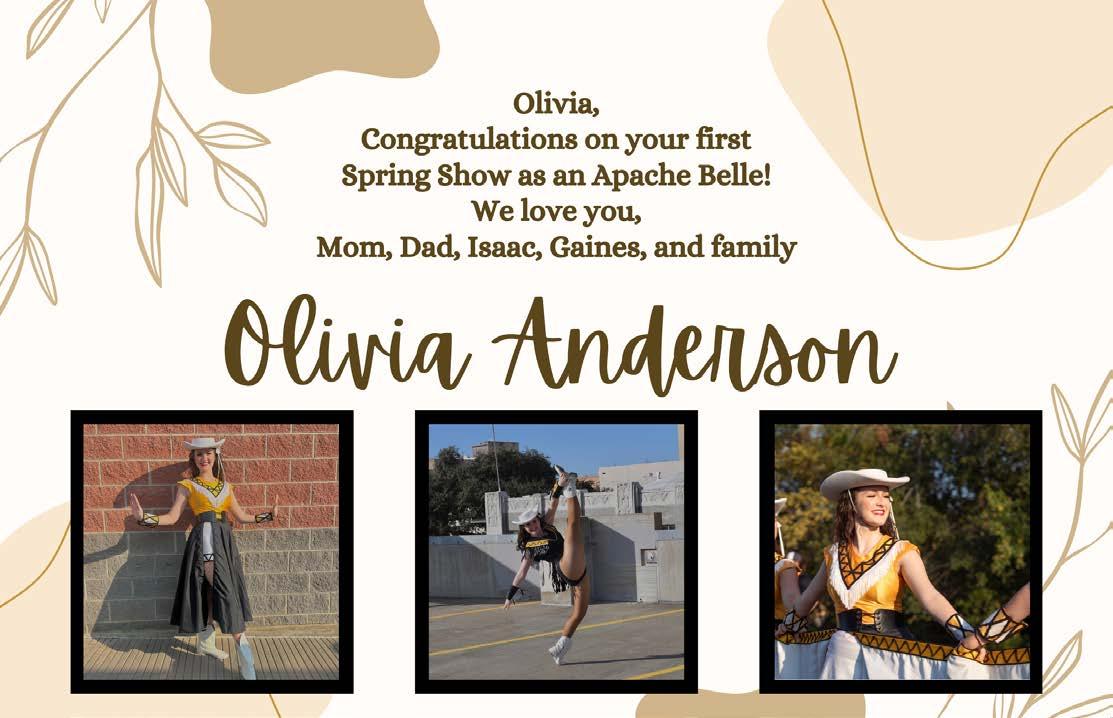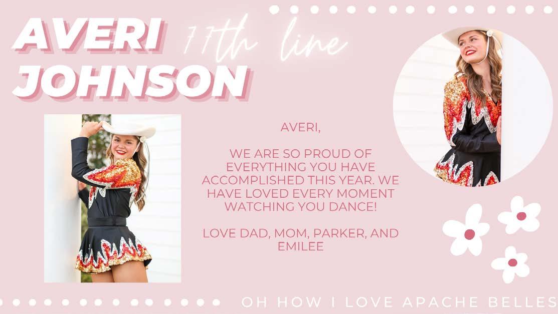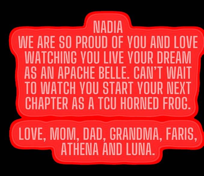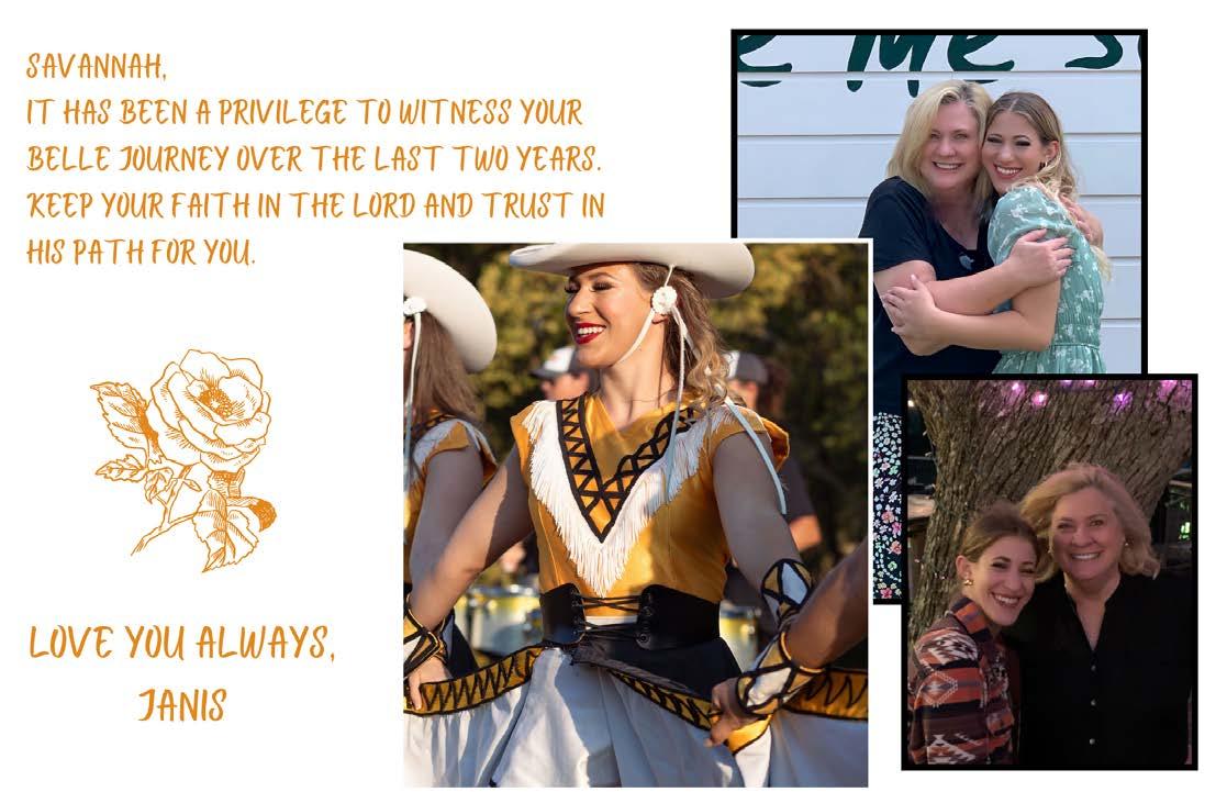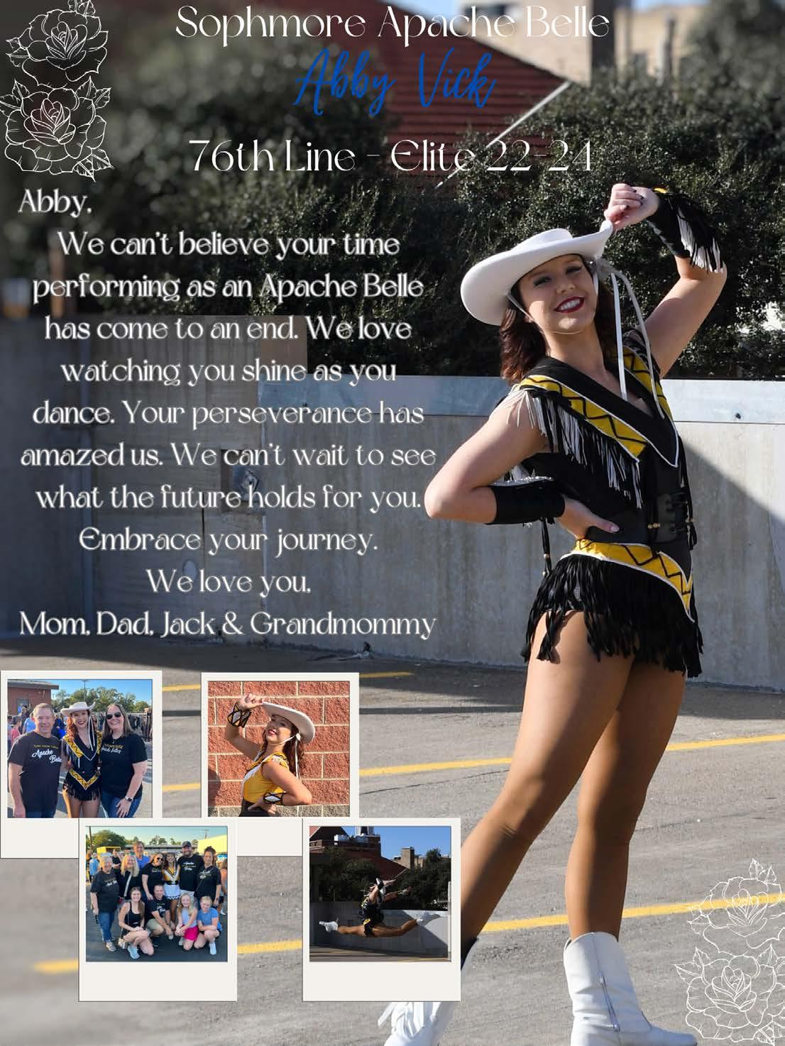Maddie, I am so happy you are a member of the Apache Belles and know you are having the best time of your life. We love watching you dance your heart out. Love you so!