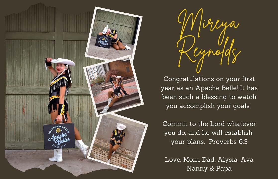 We pray that your life is blessed and that this is only the beginning of your journey on a road that will lead back to Tyler and the Apache Belles each year.