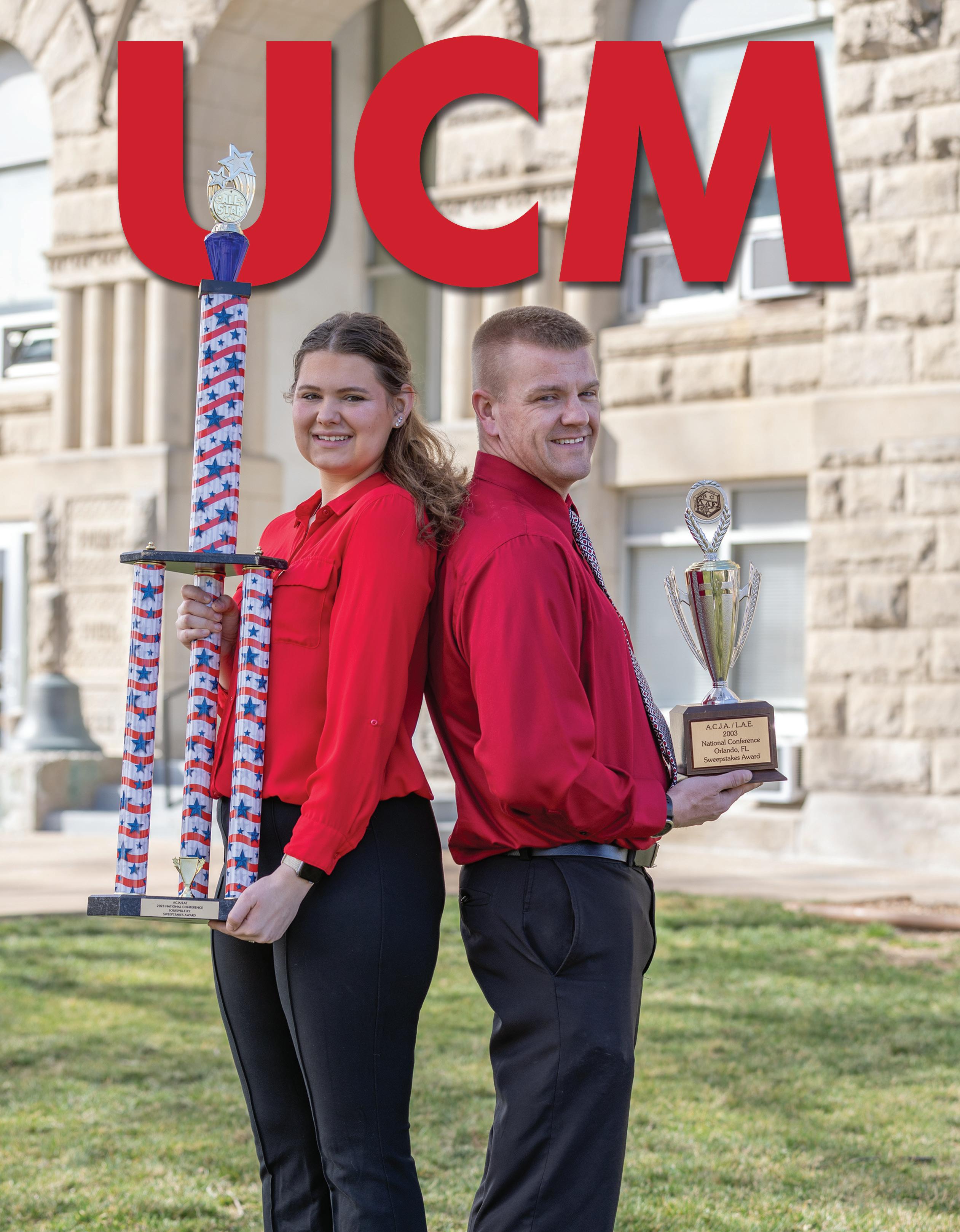 On the cover: Emma Klein, 2023–24 president of UCM’s Lambda Alpha Epsilon (LAE) student chapter, and Professor Scott Chenault, a member of the 2003 chapter, show off their trophies spanning a 20-year national winning streak. Photo by John Kennedy