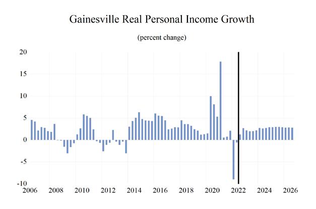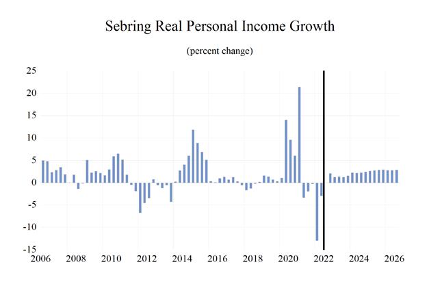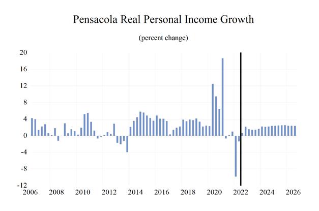 • Real personal income growth will average 1.0% during 2022-2025. Following a pullback in 2022, growth will average 2.0% through the end of 2025 hitting 3.2% that year. Florida’s average growth will be 0.1 percentage points higher than the national rate over that four-year span.