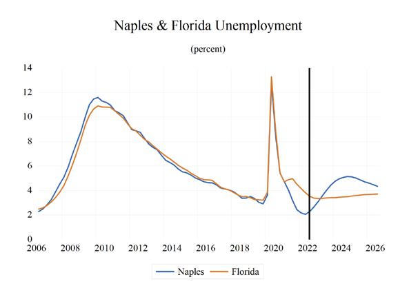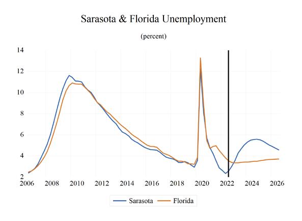 The impact of the Pasta Bowl Recession in Florida will continue to slowly manifest as 2022 gives way to 2023. There will not be large payroll job losses or very high unemployment rates, but this mild recession will impact the labor market.