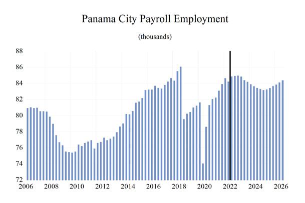 • Payroll job growth in Florida will begin to falter during the recession but not in every sector. After year-over-year growth of -4.9% in 2020, the labor market rebounded to 4.6% in 2021. With job growth expected to be 4.3% in 2022, payroll employment will contract by 0.6% in 2023 and again by 1.5% in 2024 before expanding by 0.6% in 2025.