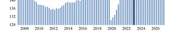 2023Q2 2023Q3 2023Q4 2024Q1 2024Q2 2024Q3 2024Q4 2025Q1 2025Q2 2025Q3 2025Q4 2026Q1 2026Q2 Total Nonfarm 9,720.0 9,662.4 9,586.8 9,537.0 9,493.9 9,470.0 9,449.0 9,432.6 9,432.5 9,449.8 9,467.6 9,487.0 9,521.3 Manufacturing 419.4 411.2 405.8 403.6 397.9 393.8 389.9 387.1 383.5 381.4 379.6 378.3 377.4 Durable Goods 293.3 286.5 281.8 280.3 275.3 271.7 268.2 266.0 262.8 261.1 259.6 258.6 257.9 Wood Products 15.3 14.9 14.5 13.9 13.2 12.8 12.6 12.9 13.0 13.3 13.6 14.0 14.4 Computer & Electronics 47.6 47.8 47.7 47.8 47.8 47.8 47.8 47.8 47.9 47.8 47.8 47.6 47.6 Transportation Equipment 58.1 54.5 51.9 50.8 49.2 47.9 46.6 45.5 44.4 43.6 42.6 41.6 40.8 Nondurables 126.1 124.7 124.0 123.4 122.7 122.1 121.7 121.0 120.7 120.3 120.0 119.7 119.4 Foods 34.9 34.5 34.8 34.9 34.9 34.9 35.0 34.9 35.0 35.1 35.2 35.2 35.2 Non-Manufacturing 9,300.6 9,251.2 9,181.0 9,133.4 9,096.0 9,076.2 9,059.1 9,045.5 9,049.0 9,068.3 9,088.0 9,108.7 9,144.0 Mining 5.8 5.8 5.9 5.9 5.9 5.9 5.9 5.9 5.9 5.9 5.9 5.9 5.9 Construction 605.8 603.7 600.9 597.5 591.4 588.4 586.8 584.3 584.2 584.0 584.3 584.9 586.0 Trans. Warehs. & Utility 1,977.3 1,931.8 1,910.0 1,896.6 1,887.7 1,878.8 1,863.9 1,852.8 1,847.4 1,851.3 1,851.4 1,843.9 1,844.1 Wholesale Trade 391.1 391.1 391.5 395.1 397.7 399.9 400.6 401.7 402.4 403.2 403.2 404.3 404.8 Retail Trade 1,150.4 1,103.4 1,082.0 1,062.1 1,047.9 1,036.2 1,020.5 1,006.2 998.1 1,001.4 999.1 991.0 989.6 Information 154.5 156.8 152.4 155.7 157.2 155.9 155.4 154.1 155.2 158.7 157.9 157.2 156.3 Prof. & Bus. Services 1,626.6 1,601.4 1,559.5 1,505.0 1,450.9 1,418.2 1,399.1 1,389.0 1,380.1 1,379.7 1,383.7 1,396.7 1,412.9 Admin. & Support 742.1 744.1 747.7 752.9 752.1 752.2 749.2 749.5 746.6 744.5 740.9 738.6 738.9 Prof. Sci & Tech 131.9 133.2 134.4 136.2 137.4 137.5 137.4 137.5 137.3 137.1 137.0 136.8 136.7 Mgmt. of Co. 752.7 724.1 677.4 615.9 561.4 528.5 512.4 502.0 496.1 498.1 505.8 521.3 537.4 Financial Activities 680.5 682.5 682.3 685.5 689.4 692.7 696.0 698.3 701.4 703.3 706.5 709.5 711.1 Real Estate & Rent 456.9 458.4 459.1 461.9 465.7 468.7 472.0 474.5 477.9 480.4 483.9 486.7 488.6 Fin. & Insurance 223.6 224.0 223.3 223.6 223.7 224.0 224.0 223.8 223.4 222.9 222.6 222.7 222.5 Edu. & Health Service 1,472.6 1,483.9 1,488.1 1,505.3 1,517.5 1,527.8 1,529.8 1,532.2 1,533.6 1,537.1 1,537.2 1,540.9 1,543.2 Education Services 200.0 203.5 203.3 205.4 207.1 208.1 208.5 209.0 208.9 209.1 209.5 210.1 210.4 Health Services 1,272.7 1,280.4 1,284.8 1,299.8 1,310.4 1,319.7 1,321.3 1,323.2 1,324.8 1,328.0 1,327.8 1,330.8 1,332.8 Leisure & Hospitality 1,313.4 1,314.0 1,304.4 1,297.7 1,303.8 1,308.8 1,315.8 1,314.2 1,319.3 1,319.9 1,326.3 1,329.3 1,338.3 Other Services 350.7 353.9 357.4 361.9 367.2 370.8 374.5 378.5 381.7 384.8 387.1 389.8 392.2 Government 1,113.3 1,117.6 1,120.2 1,122.4 1,124.9 1,128.8 1,131.9 1,136.2 1,140.3 1,143.7 1,147.5 1,150.7 1,153.9 Federal Gov't. 154.1 154.6 155.0 155.5 155.8 156.3 156.7 157.0 157.3 157.7 157.9 158.2 158.4 State & Local Gov't 959.3 962.9 965.2 967.0 969.1 972.6 975.2 979.1 983.0 986.0 989.6 992.5 995.5