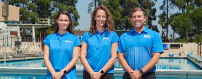 The UCLA team is scheduled to practice at Spieker Aquatics Center. Athletes and coaches are available before or after practice, depending on class schedules.