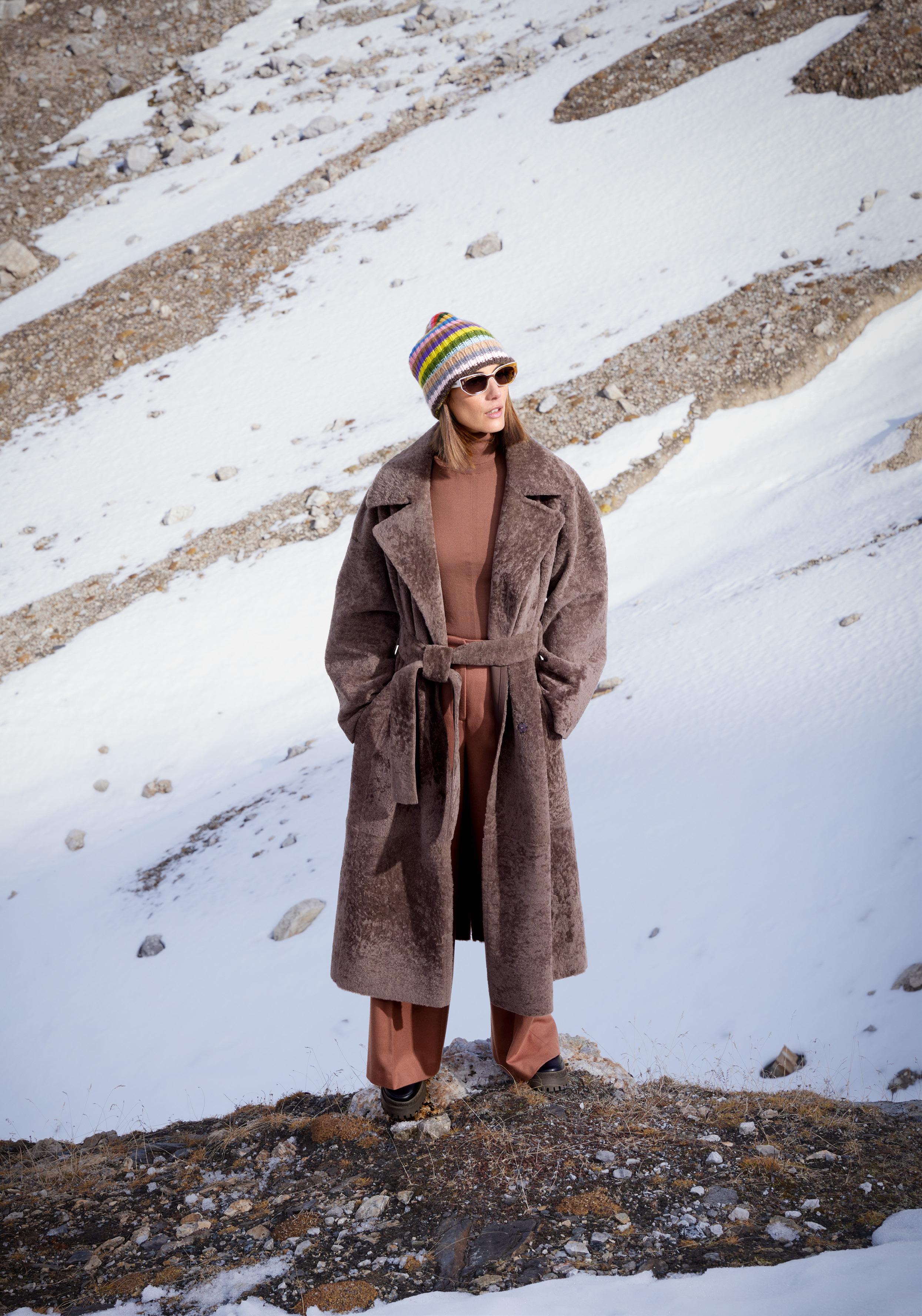 Lammfellmantel ARMA 1.999.95 Pullover 495.–, Hose 475.–, Beides von JOSEPH. Mütze HURRAY 189.90 Schuhe LEMON JELLY 129.95