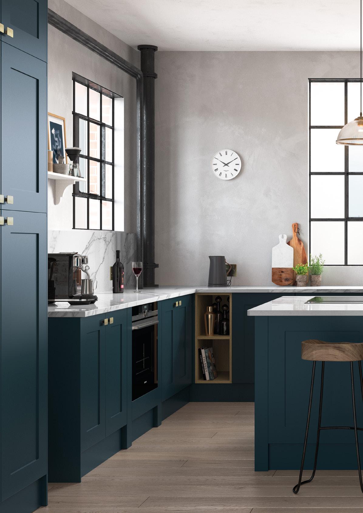 Harborne 62 Shaker, integrated handle Jacobsen 68 Inframe, raised centre panel