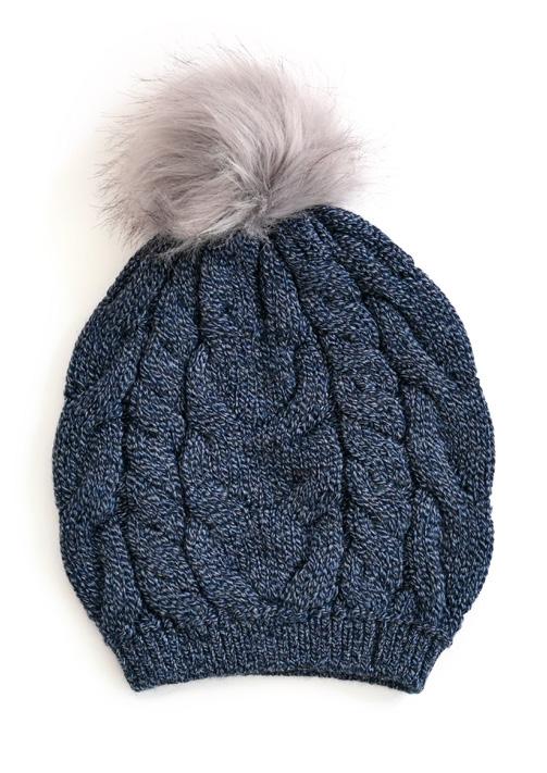 Fancy Cable Beanie with Pom Pom in Merino Wool (One Size)