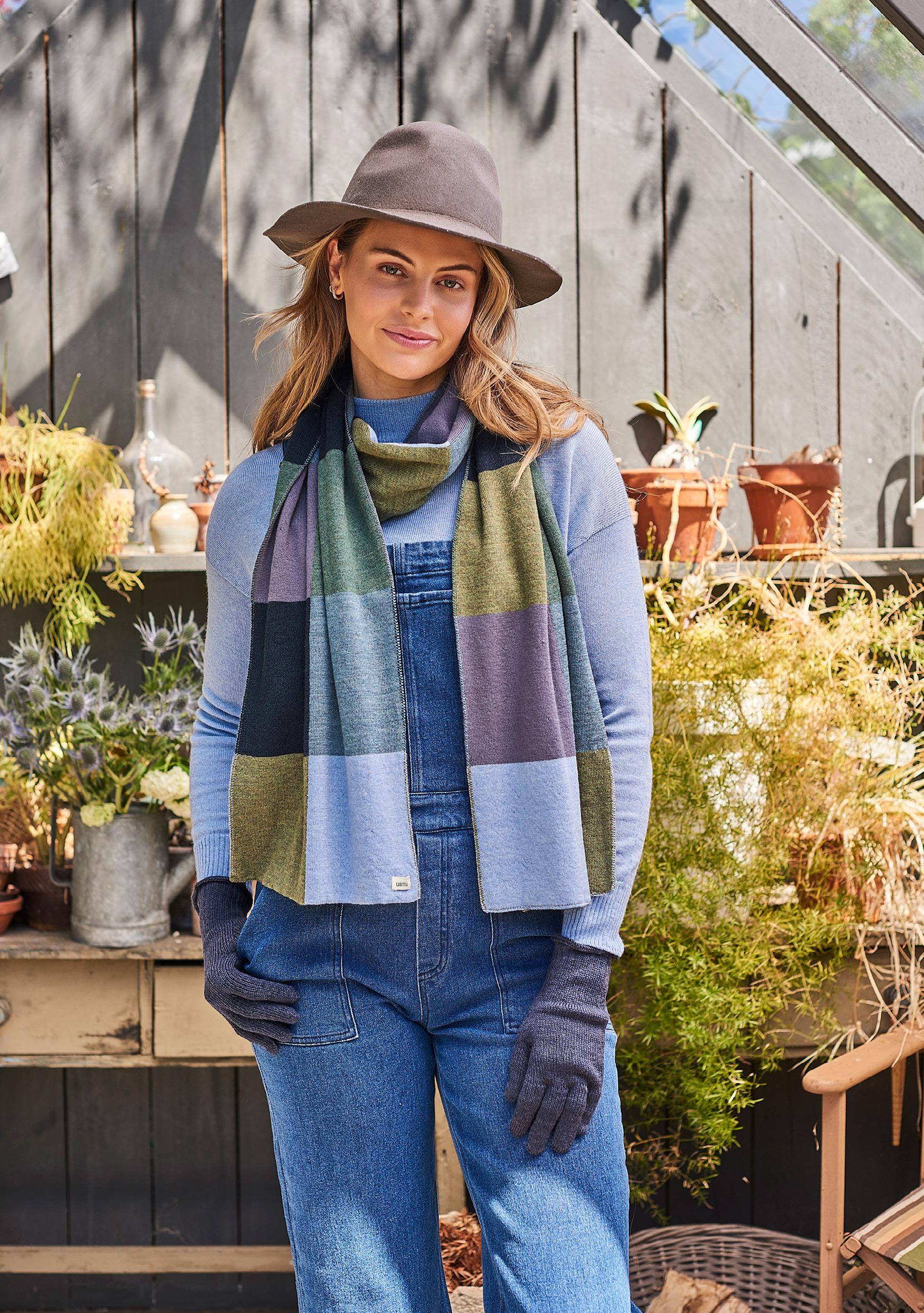 Block Colour Scarf & Glove in Merino Wool (One Size)