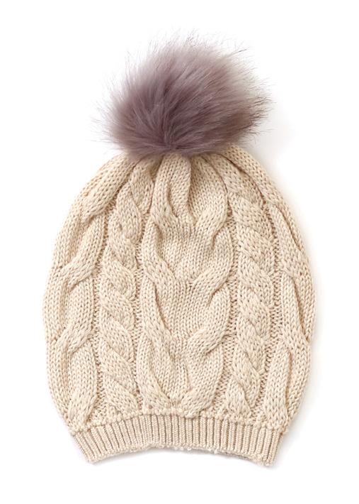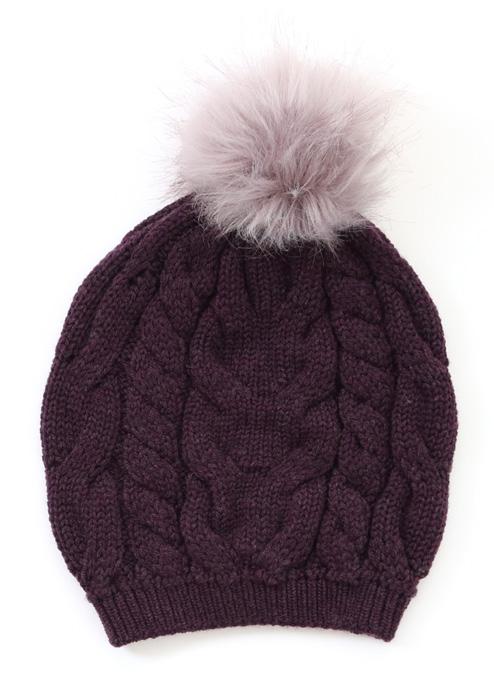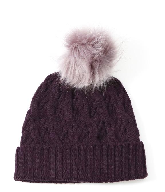 MABEL BEANIE Aran Cable Beanie with Pom Pom in Merino Wool (One Size) PLUM MUSHROOM