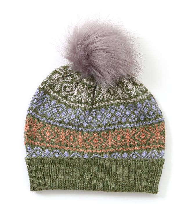 VALENTINA BEANIE Fancy Cable Beanie with Pom Pom in Merino Wool (One Size)