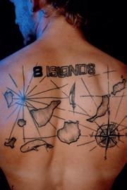‘8 Islands’, vereeuwigd op mijn rug. Net als alle andere uitdagingen krijgen ze een permanente plek op mijn lijf.