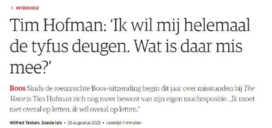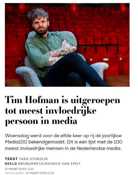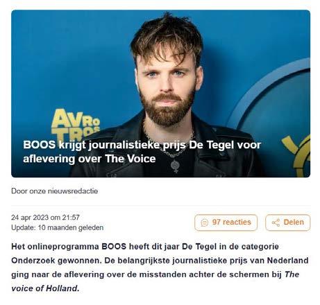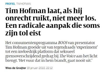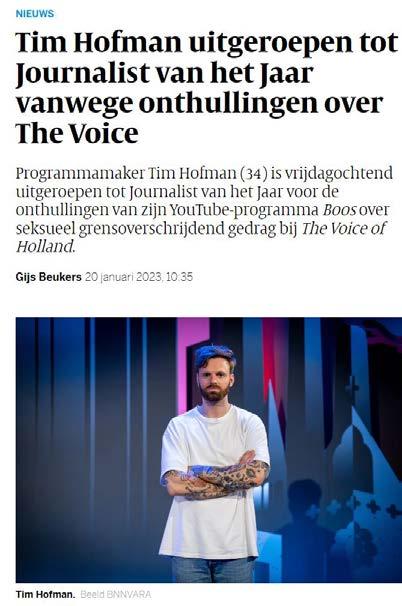 Tim Hofman uitgeroepen tot Journalist van het Jaar en ontving zijn programma BOOS de belangrijke journalistieke prijs De Tegel