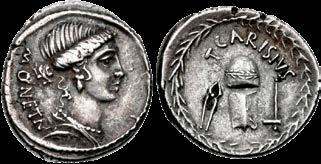 Zilveren denarius geslagen door Titus Carisius, 46 BC, Rome.