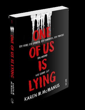 One of Us Is Lying | Karen M. McManus | oorspronkelijke titel: One of Us Is Lying | vertaling: Willeke Lempens omslagontwerp: Saskia Janssen | paperback | 304 blz. | 14 x 21,5 cm | isbn 978 90 00 39290 2 | nur 285 (Fictie 15+) isbn 978 90 00 39311 4 | € 5,99