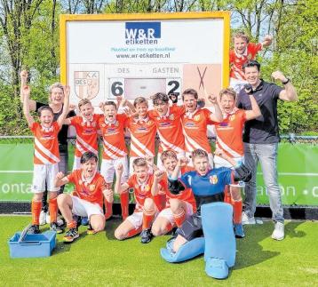 Onder luid applaus van het publiek, van zijn teamgenoten van de JO18 en de spelers van de JO11 nam Finn, zichtbaar verrast en met een lach van oor tot oor, de mooie aanmoedigingsprijs in ontvangst.