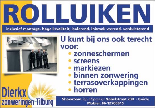 Afval kwijt? milieustraat DONDERS Esbeek WWW.DONDERSGRONDVERZET.NL Notelstraat 56 ■ Esbeek ■ Tel. 013 - 504 12 24 HILVAREN OP VAKANTIE is van zaterdag 22 juli t/m maandag 7 augustus OP VAKANTIE Vanaf dinsdag 8 augustus zijn wij u graag weer van dienst. HILVARENBIKE | Doelenstraat 8, 5081 CL Hilvarenbeek T : 013-5342627 | E : info@hilvarenbike.nl | I : www.hilvarenbike.nl Geopend: di t/m vr van 10.00 u. tot 17.30 u. za van 09.00 u. tot 16.00 u. | ma gesloten Tijvoortsebaan 4 | Goirle | 013-5342838 www.autobedrijfrombouts.nl Autobedrijf Rombouts