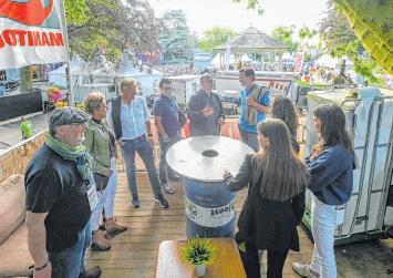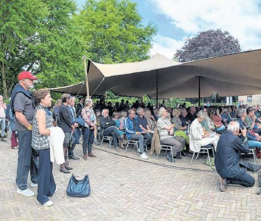 Dik anderhalf uur later kon de champagne van de vernissage tevoorschijn komen en konden de genodigden hun ronde langs de kunstwerken gaan maken. Die ronde maken wij later, maar u kunt al sinds zaterdag (al dan niet gegidst) en tot en met 16 juli de tentoonstelling in die fraaie omgeving gaan bekijken. evr (foto’s Casper van Aggelen)